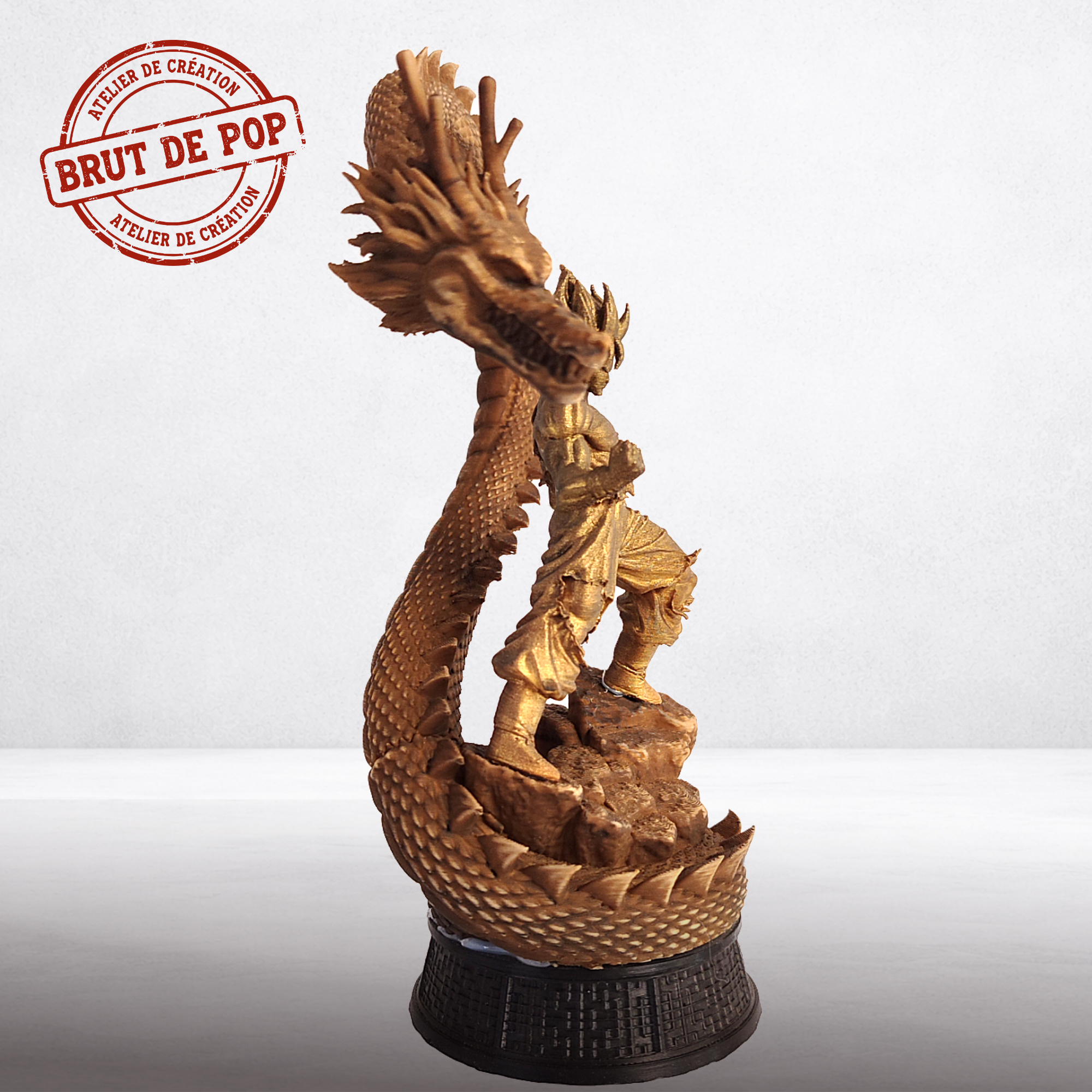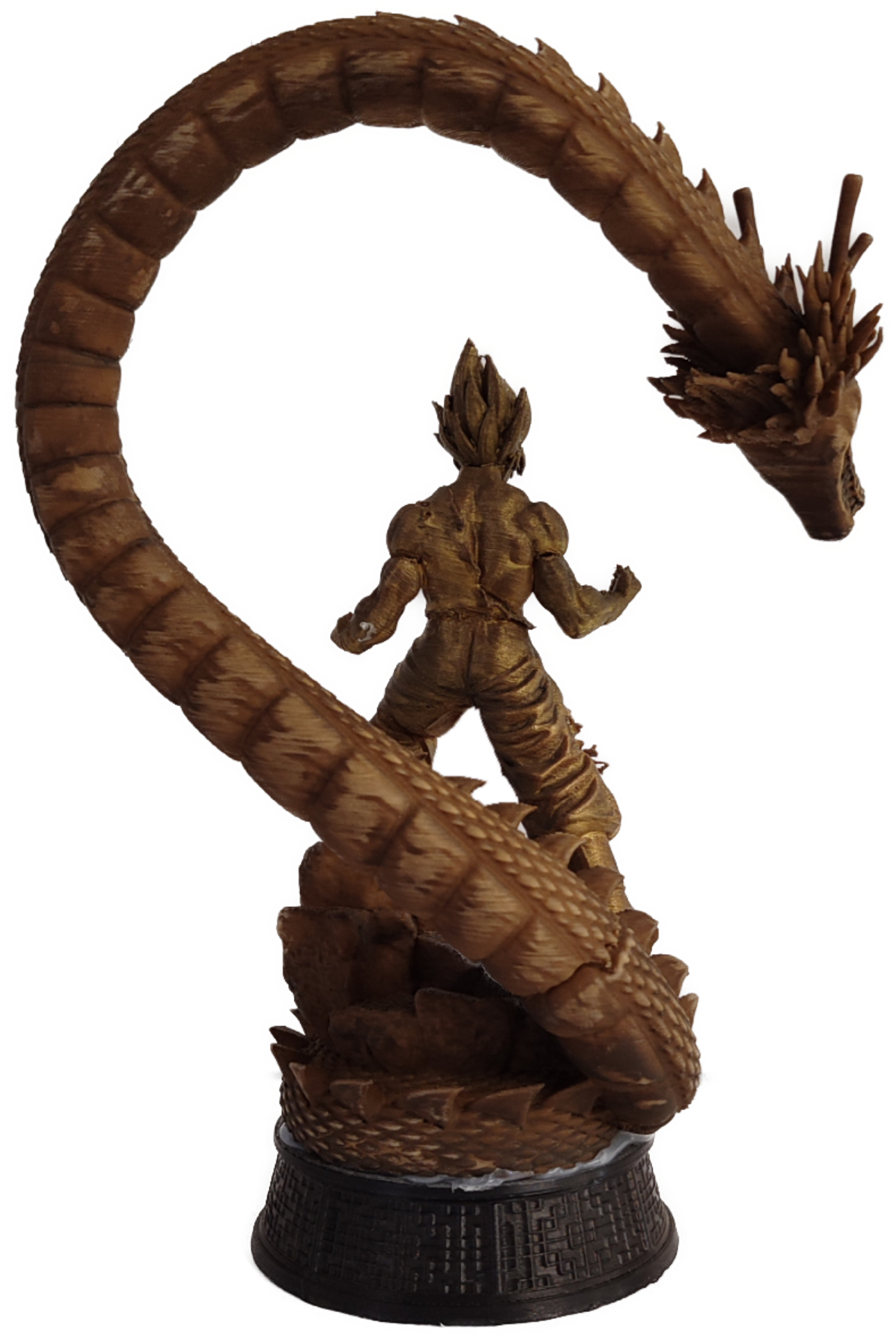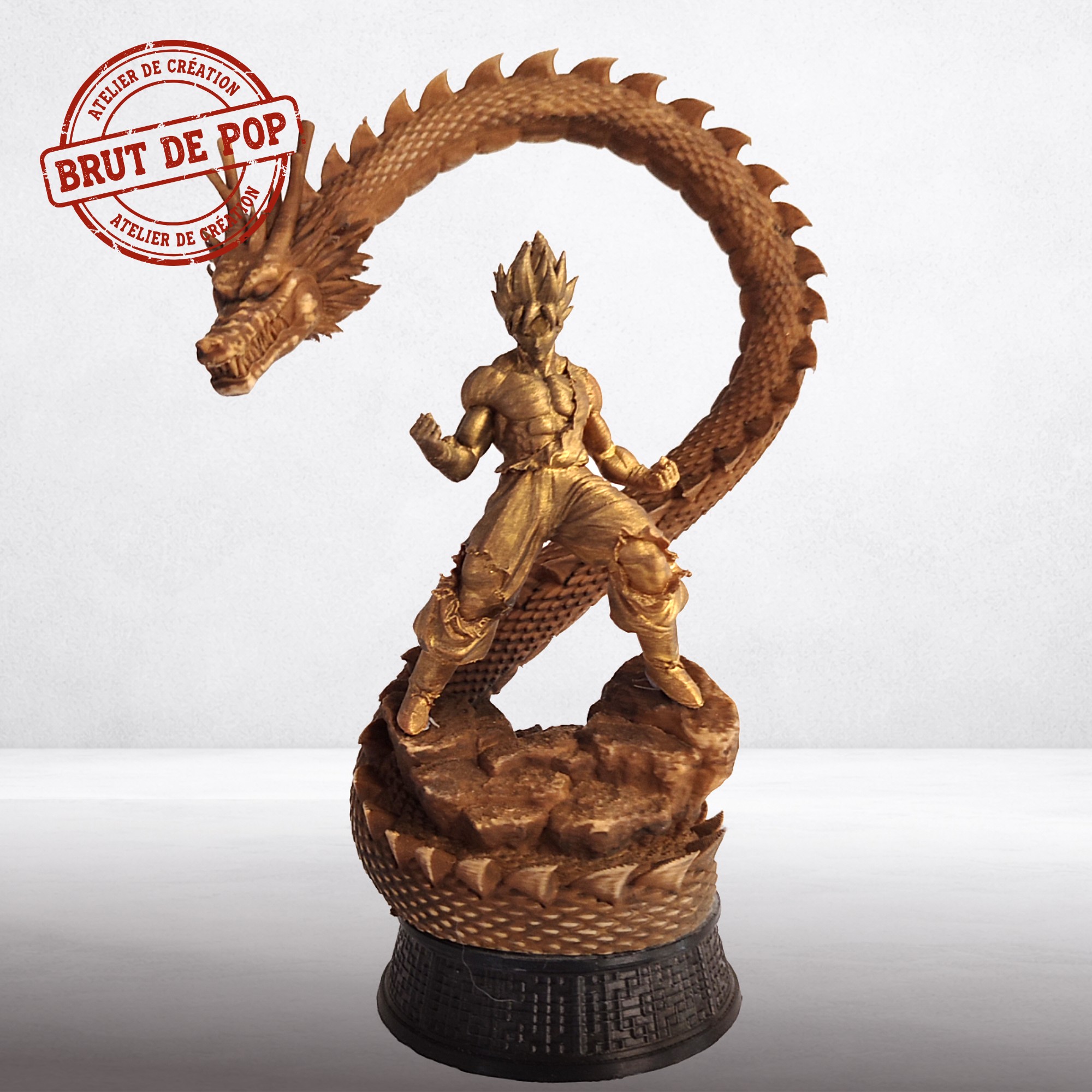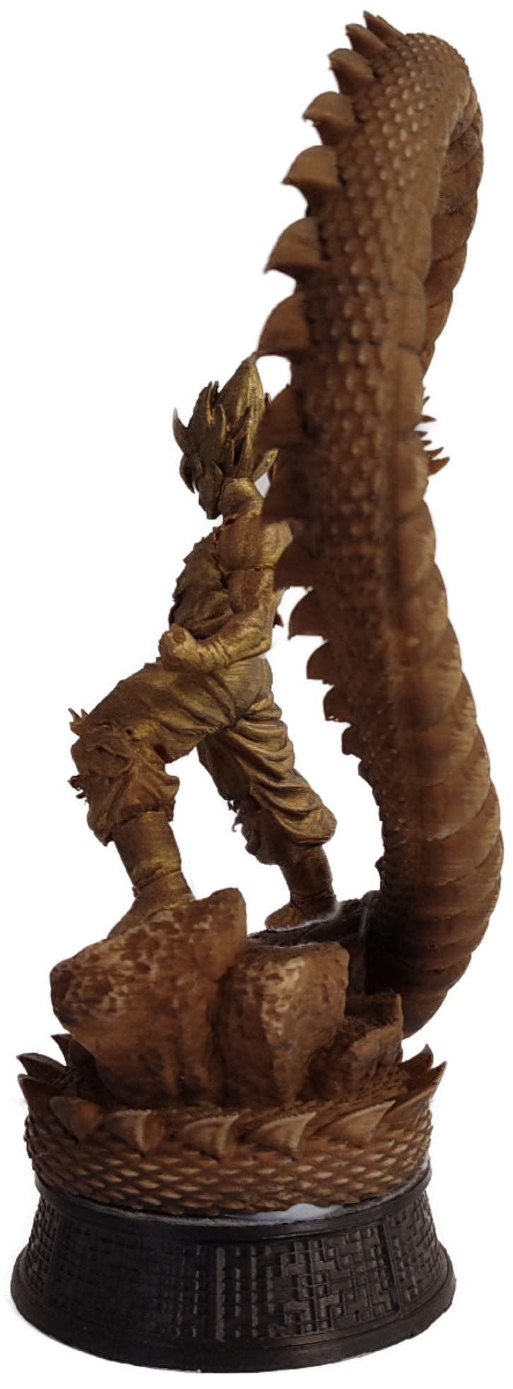 Artefact massif. Duo iconique alliant la tension musculaire du guerrier à la puissance sinueuse du dragon. Finition bois de fer avec strates de fabrication additive conservées pour un rendu brut. Teinte brun profond. La densité renforcée du matériau assure une stabilité et une prise en main noble.