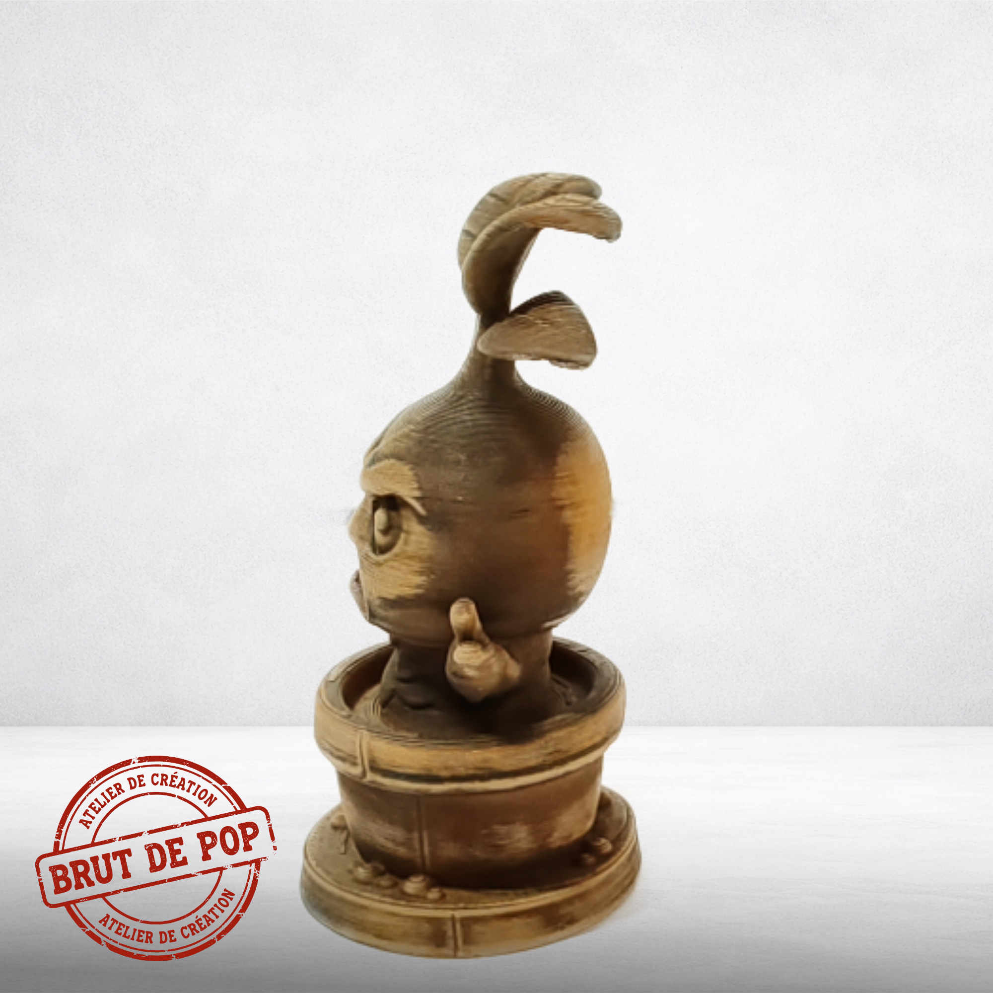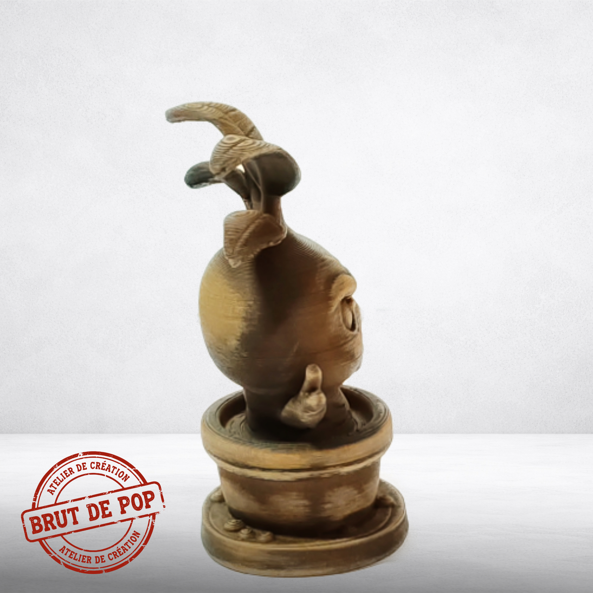 Brut de Pop réinvente l'objet de collection : une icône Geek figée dans une esthétique minérale brute. Nos biopolymères issus de cultures renouvelables offrent une alternative saine et écologique au bois industriel et au plastique pétrochimique.